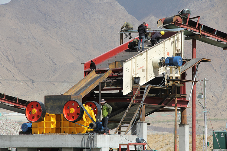 本產品以電動機為動力,通過電動機皮帶輪,由三角皮帶和槽輪驅動偏心軸,使動顎按預定軌跡作往復運動,將進入由固定顎板、活動顎板和邊護板組成的破碎腔內的物料破碎,并通過下部的排料口將成品物料排出。